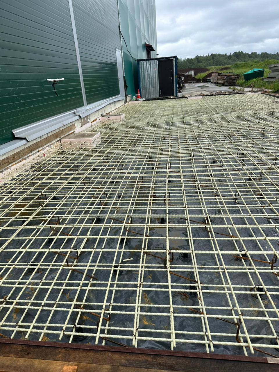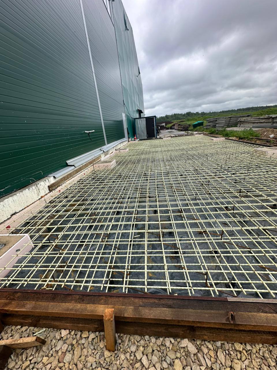 Занимаемся устройством фундамента для пристройки к ангару, с использованием композитной арматуры, по проекту заказчика.