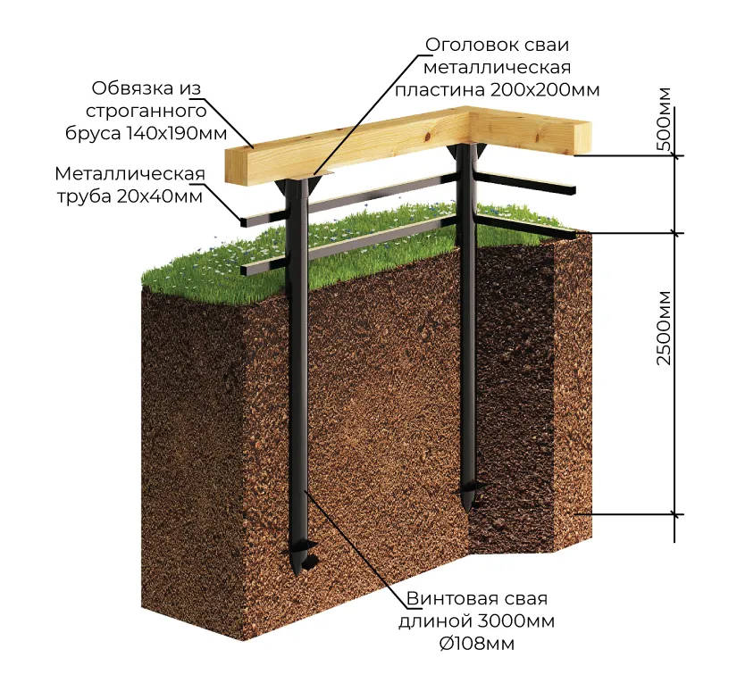 Обвязка фундаментных свай деревянным брусом | п.м | 108,00 |